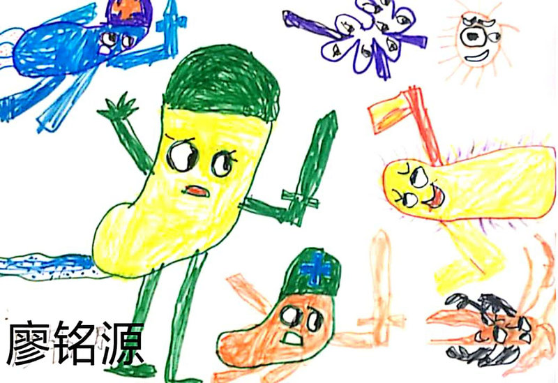 作品名稱《藥丸與細(xì)菌大戰(zhàn)》 作者廖銘源 年齡5歲