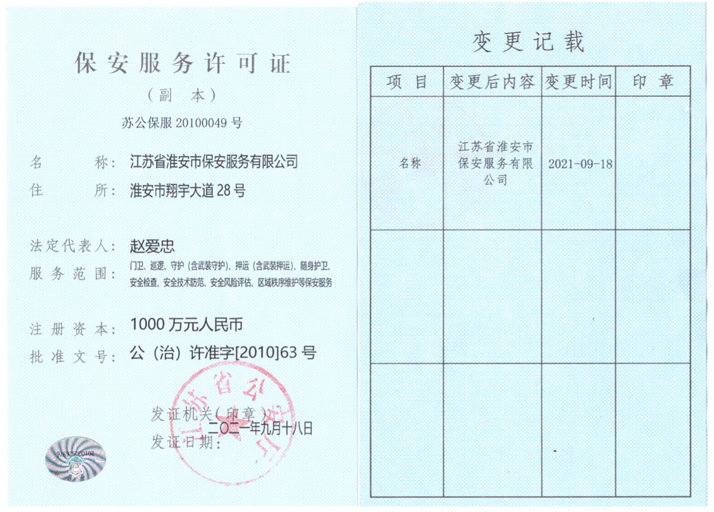 保安服務(wù)許可證