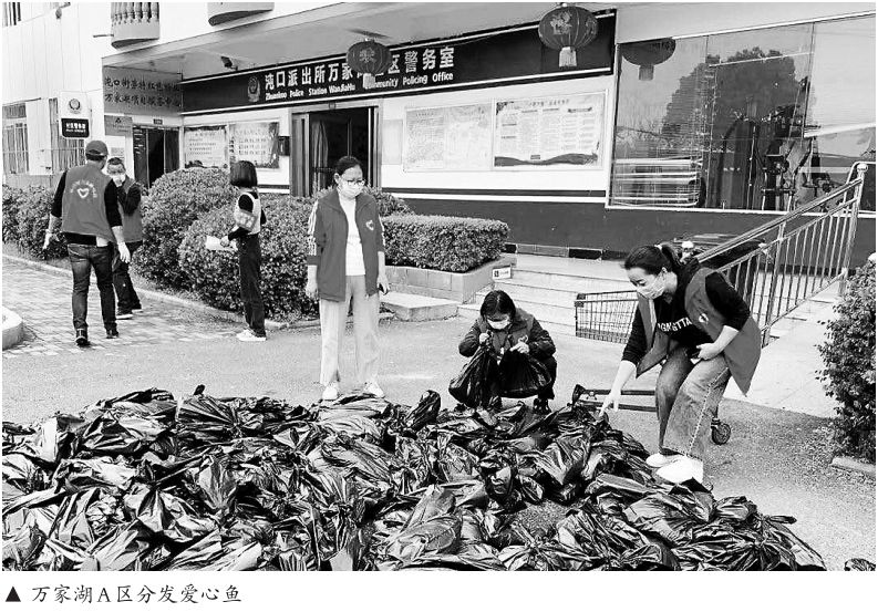 “社區(qū)的魚到了,A區(qū)的志愿者到南門集合,大家做好防護(hù)”。