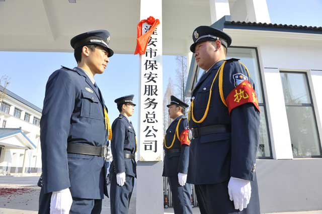 雖然室外氣溫格外寒冷,但這里卻充滿了春天的氣息。上午9時50分,4名禮儀保安抬著一塊披著紅綢的標(biāo)牌, 邁著整齊的步伐走向公司大門,9時58分,江蘇省淮安市保安服務(wù)總公司標(biāo)牌緩緩地、平穩(wěn)地掛了起來,現(xiàn)場響起陣陣鞭炮聲和熱烈的掌聲,大家共同為總公司新址掛牌而歡欣鼓舞。