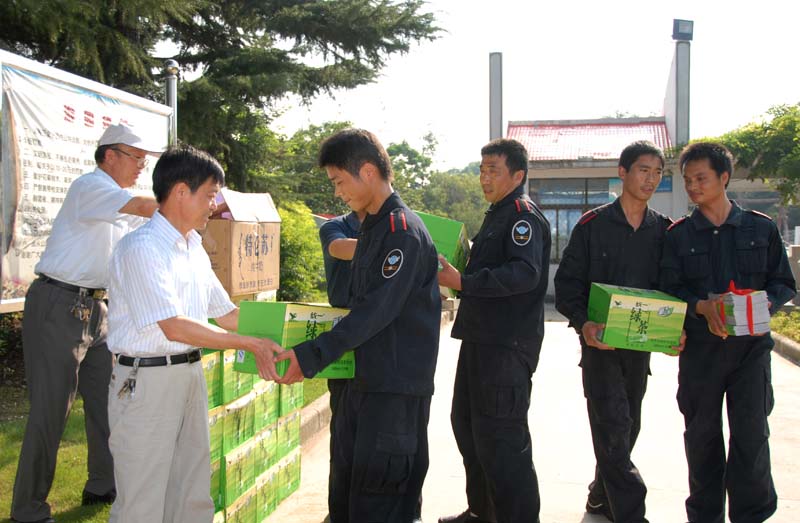 8月7日下午,市總工會領(lǐng)導(dǎo)在市局工會領(lǐng)導(dǎo)的陪同下來我公司,親切慰問了正在訓(xùn)練的特訓(xùn)隊員,給他們送來了飲料、毛巾等防暑用品。