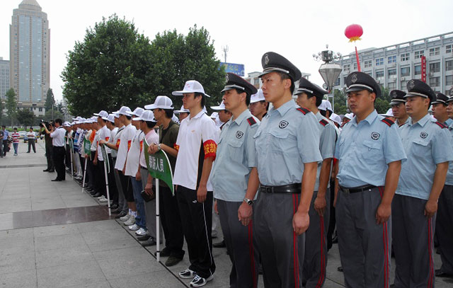 7月21日上午,淮安市群眾性義務(wù)巡防“紅袖標工程”建設(shè)啟動儀式在市民健身廣場舉行,當日,由出租車司機、聯(lián)防隊員、義務(wù)巡防隊員和市民代表等組成的1000余名“紅袖標”義務(wù)巡防員走向淮安街頭開展巡邏工作。公司50余名保安員參與了啟動儀式。