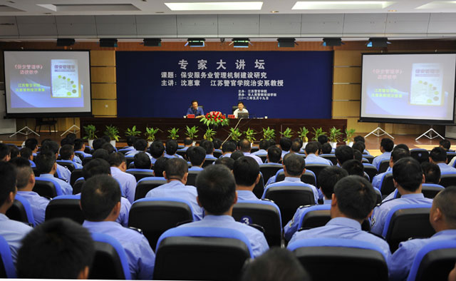 2012年5月19日,江蘇警官學院教授沈惠章在淮安警官學院以“保安服務業(yè)管理機制建設研究”為內(nèi)容進行了一天的講座,公司保安隊伍和有關(guān)部門骨干近200人聆聽了講座,并針對保安業(yè)情況與沈教授進行了交流和溝通。