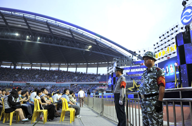 6月20日晚,由江蘇增力公司主辦的“雙溝牡丹2015亞洲群星演唱會”在淮安市體育中心體育場舉行,邀請韓紅、羅志祥、周筆暢、鄭智化、王杰等歌手來淮表演,現(xiàn)場觀眾3萬余人。為確保此次演唱會安全順利舉辦,總公司按照“周密部署、確保安全”的總體目標,專門成立了安保工作領導小組,精心制定安保方案,積極協(xié)同有關部門細致落實各項安保措施;成立人力防范、安全檢查、技防監(jiān)控、后勤保障等共8個工作組,共抽調總公司人防中心、押運中心、行政中心和器材公司、技防公司、物管公司、警犬基地等共計1000余名安保力量參加晚會安保工作,圓滿完成了任務。