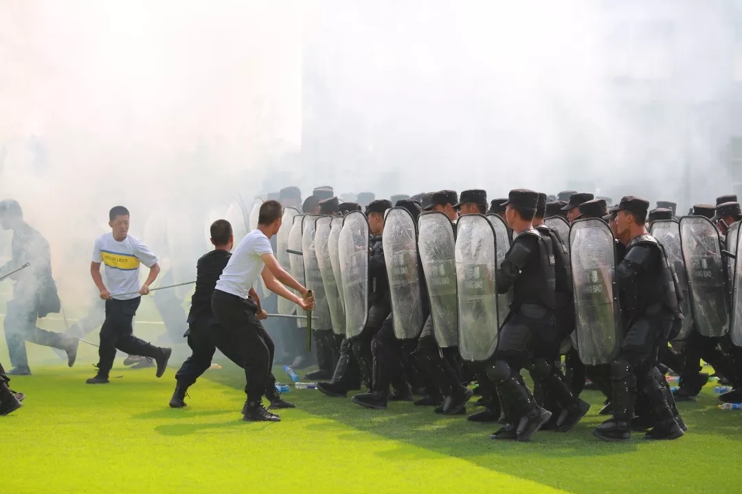 上午9時(shí),匯報(bào)演練在升國旗儀式后拉開帷幕,來自總公司人防隊(duì)伍、押運(yùn)隊(duì)伍、高職校安保專業(yè)班10個(gè)隊(duì)列方陣,依次進(jìn)行了分列式展示和交通手勢操、擒敵拳、押運(yùn)槍支反襲擊操、高級安保專業(yè)女子匕首操、反恐防暴盾牌術(shù)、群體性事件模擬現(xiàn)場處置等科目實(shí)戰(zhàn)演練,整場演練活動(dòng)緊張有序,參演隊(duì)員精神振奮、士氣高昂、技能嫻熟、作風(fēng)頑強(qiáng),充分展現(xiàn)了保安隊(duì)伍紀(jì)律嚴(yán)明、團(tuán)結(jié)奮進(jìn)、敢打必勝的良好形象。