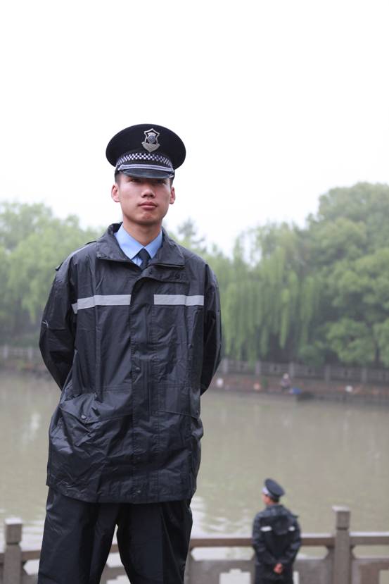 圖為:保安隊(duì)員以最佳的精神面貌投入到工作中