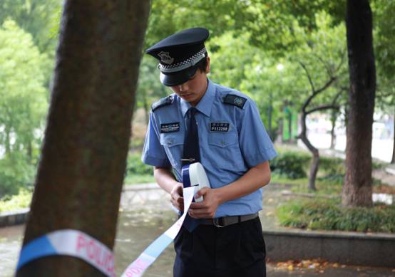 圖為:比賽結(jié)束后,保安隊(duì)員收回警戒線,保持通暢
