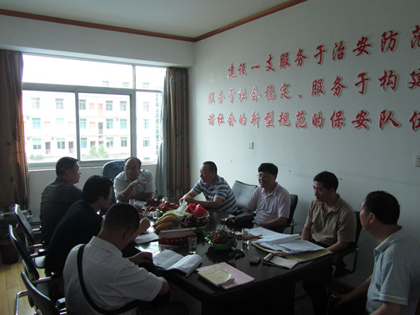 建甌市公安局消息(通訊員 毛志華) 2012年7月17日,全省保安工作交叉檢查組一行深入建甌藍(lán)盾保安公司開展保安服務(wù)工作專項(xiàng)檢查。座談會上,該公司總經(jīng)理張建輝首先對藍(lán)盾保安公司貫徹落實(shí)省廳、市局有關(guān)開展保安企業(yè)改制、保安服務(wù)市場清理整治專項(xiàng)行動的工作情況進(jìn)行了詳細(xì)匯報。檢查組要求藍(lán)盾保安公司年底要完成四個百分百,一是改制要100%完成,二是信息采集率要達(dá)到100%,三是保安員持證上崗率達(dá)100%,四是換裝完成100%。