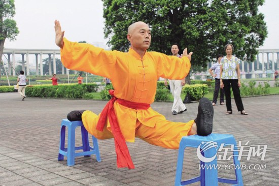“農(nóng)民工組合”中的武者張中心來自河南孟州,體魄結(jié)實,剃著光頭,頗有點少林寺武僧的范兒。張中心告訴記者,自己出生在有著“武術(shù)之鄉(xiāng)”之稱的孟州化工鎮(zhèn),從小就對武術(shù)癡迷。與王文正一樣,張中心同樣從小家境貧寒,早年父親得了精神病,家里沒了頂梁柱,張中心也是小學(xué)沒畢業(yè)便輟學(xué)了,兄妹三人都是母親一人拉扯大。由于父親精神病發(fā)作,出去惹了不少事,遭到了鄰居的不解和謾罵,兄妹幾個也常被欺負(fù),于是張中心暗下決心,學(xué)好武術(shù),保護(hù)家人不被欺負(fù)。說到這,張中心覺得自己走上習(xí)武之路的初衷有些偏頗,“習(xí)武之人不可為一己之私,以怨報怨,有違武術(shù)之道,所以現(xiàn)在打算免費(fèi)傳授一些武術(shù)給大家,當(dāng)做健身之道?!?/SPAN>