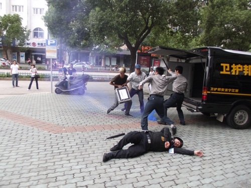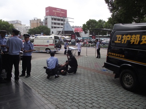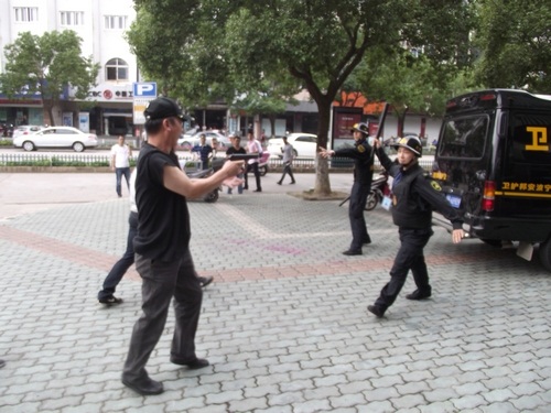 象山縣公安局舉行了反恐怖應(yīng)急實(shí)戰(zhàn)演練,寧波安邦護(hù)衛(wèi)有限公司象山大隊(duì)參與了配合。演練內(nèi)容為:當(dāng)運(yùn)鈔車到達(dá)民生銀行網(wǎng)點(diǎn)正卸款箱時(shí),突遇兩名持槍械恐怖分子沖向運(yùn)鈔車,擊斃兩名押運(yùn)員后,用煙霧彈實(shí)施爆炸,正要奪款箱而逃時(shí)銀行兩名保安員沖出網(wǎng)點(diǎn)與恐怖分子搏斗。公安機(jī)關(guān)接警后,110指揮中心立即下達(dá)指令,迅速調(diào)集武警、巡警、交警、刑警、消防等百余名警力和120急救中心緊急趕赴現(xiàn)場,進(jìn)行消防滅火和醫(yī)療急救,公安機(jī)關(guān)進(jìn)行現(xiàn)場勘查,并堵截交通要道,最終擒獲恐怖分子,追回款箱。縣政府、縣公安局有關(guān)領(lǐng)導(dǎo)到場觀摩了演習(xí)。
