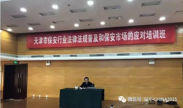 隨后,天津市公安局保安業(yè)監(jiān)管處法制辦周俐攻主任從四個(gè)方面講解了《保安從業(yè)企業(yè)法律法規(guī)普及》的相關(guān)知識(shí)。解析了保安服務(wù)的概論,說明了《保安服務(wù)管理?xiàng)l例》的指導(dǎo)思想和特點(diǎn)、給保安服務(wù)企業(yè)帶來了啟示和機(jī)遇。希望保安企業(yè)和保安員們認(rèn)真學(xué)***家的法律法規(guī),以提高自身知法守法的自覺性,提升自己的法律水平,充分運(yùn)用法律武器保護(hù)自己的合法權(quán)益,同時(shí)善于使用法律武器維護(hù)社會(huì)治安秩序,保護(hù)客戶的人身和財(cái)產(chǎn)不受非法侵害,真正成為知法懂法,遵紀(jì)守法,勇于護(hù)法的專業(yè)化、職業(yè)化的保安隊(duì)伍。