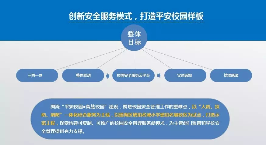 5月10日,合肥保安集團有限公司與合肥市瑤海區(qū)琥珀名城小學正式簽署“平安校園”合作協(xié)議。雙方將以琥珀名城小學琥珀名城校區(qū)為試點,共同打造“平安校園”示范工程,推廣校園安全管理服務新模式。琥珀名城小學擁有在校學生3200余名,近年來辦學規(guī)模不斷擴大,但校園現(xiàn)有技術設備和安保服務分類建設,系統(tǒng)性不足,合力不足,安防基礎設施設備較弱。在瑤海區(qū)政府、教體局等部門的指導下,保安集團依據(jù)琥珀名城小學(琥珀名城校區(qū))自身特點,通過優(yōu)化人防,增加安保人員與交通引導人員力量,強化管理監(jiān)督。提升技防使用入侵報警探測、電子巡更、智能分析系統(tǒng)等,實現(xiàn)監(jiān)控全覆蓋,消防在線監(jiān)測。更以保安集團接處警中心為媒介與110接處警系統(tǒng)、公安局、教體局、衛(wèi)計委等形成多方聯(lián)動,大大提高了緊急事件處理的時效性。從多方面為琥珀名城小學(琥珀名城校區(qū))提供“一體化綜合智能安保服務”。