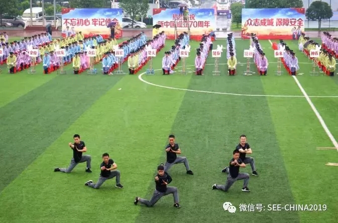 在隨后進行的分列式、隊列、武術(shù)表演、處置醫(yī)療突發(fā)事件、交通指揮操、校園突發(fā)事件處置演練、一招制敵、消防演練、犯罪嫌疑人在自助銀行存取款機上安裝偽讀卡器和隱形攝像機應(yīng)急處置演練、擒敵拳配套、倒功、防搶演練等項目演練過程中,節(jié)奏緊湊、動作流暢、搏斗精彩,贏得了全場陣陣喝彩和掌聲。