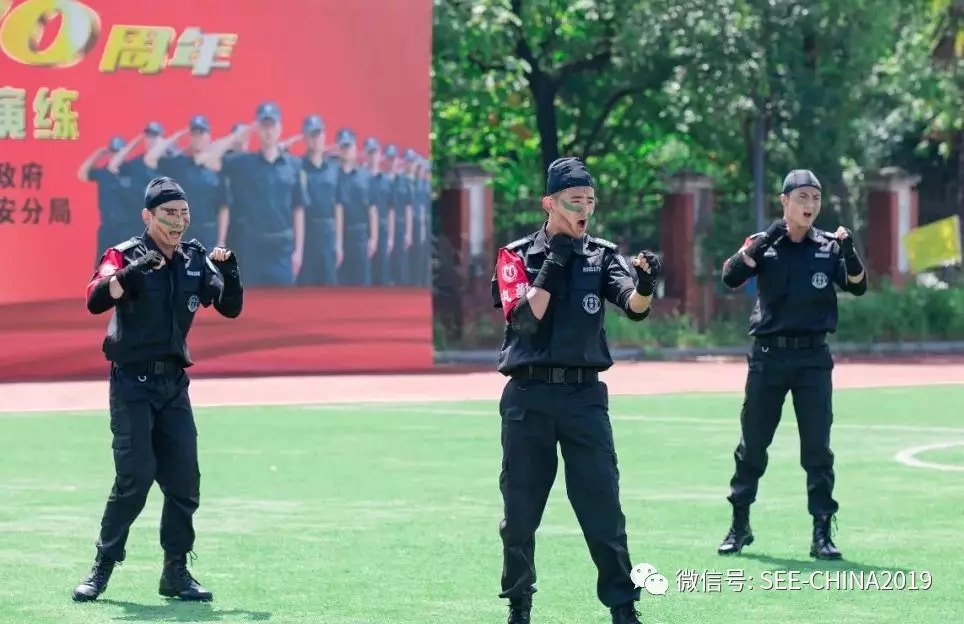 匯報(bào)演練主要由下城保安公司負(fù)責(zé),項(xiàng)目為:分列式,防暴處突隊(duì)形(含警犬)、單兵隊(duì)列動作、擒敵術(shù)、應(yīng)急棍術(shù)、匕首操、交通指揮手勢、搏擊術(shù)、消防演練、保安裝備展示等10余個(gè)項(xiàng)目。