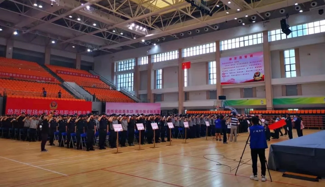 8月21日,2019年度揚州市保安員職業(yè)技能大賽開幕式暨建國70周年大慶安保誓師大會在揚州職業(yè)大學體育館隆重舉行,活動由市公安局、市人社局、市總工會、團市委聯(lián)合舉辦。