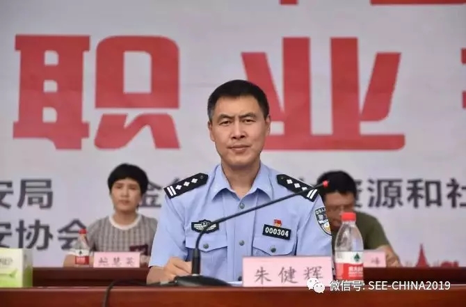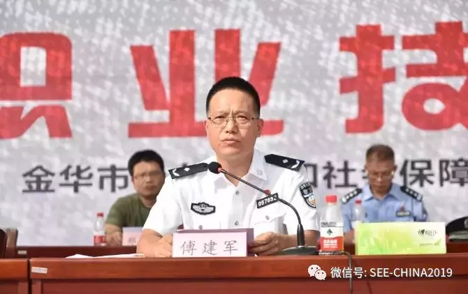 浙江省公安廳治安監(jiān)督管理總隊(duì)副總隊(duì)長朱健輝,金華市公安局黨委委員、副局長傅建軍,金華市人力資源和社會保障局黨組成員邵森寅出席開幕式并講話。金華市總工會副主席張永積出席開幕式。開幕式上全體保安員進(jìn)行“保安勇?lián)?dāng)·平安迎大慶”集體宣誓。