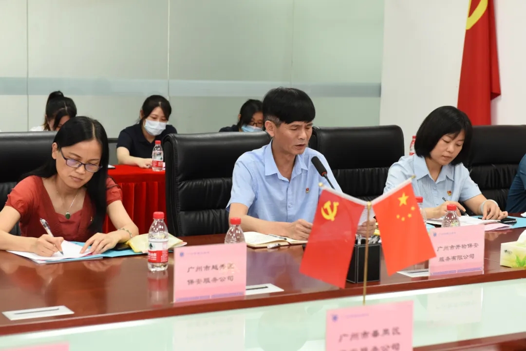 廣州市南沙保安服務(wù)有限公司黨支部書記劉文超圍繞該公司脫鉤改制后堅(jiān)持黨的領(lǐng)導(dǎo),健全了支部班子,積極推進(jìn)黨組織建設(shè)在國(guó)有企業(yè)高質(zhì)量發(fā)展中起到的作用等工作情況進(jìn)行分享。