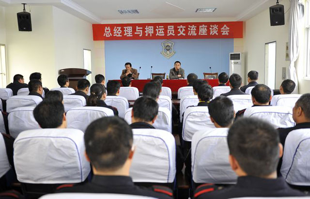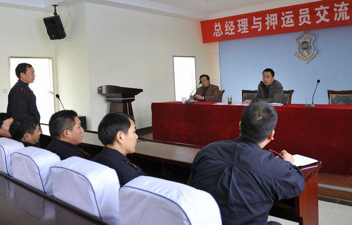為了進(jìn)一步加強(qiáng)守護(hù)押運(yùn)隊(duì)伍管理,適時掌握一線隊(duì)員的思想動態(tài),2010年11月27日上午, 公司在押運(yùn)中心三樓召開了“總經(jīng)理與押運(yùn)員面對面交流座談會”。押運(yùn)中心市區(qū)全體守押人員、縣區(qū)押運(yùn)員代表和公司各部門負(fù)責(zé)人及機(jī)關(guān)部分員工160余人參加了會議。