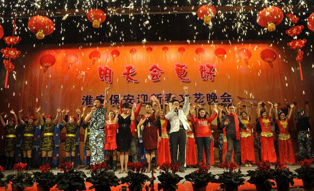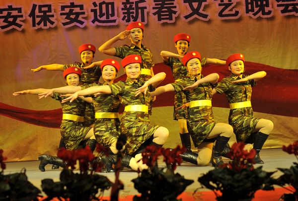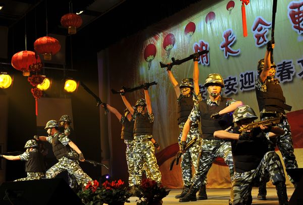 整場晚會,都是各部門員工自編自演,以自娛自樂為主。機(jī)關(guān)女職工帶來的舞蹈《印度新娘》,用優(yōu)美的舞姿展示了她們昂揚(yáng)向上的精神風(fēng)貌。保安部編排的節(jié)目《鬧春》則另辟蹊徑,八位由小伙子反串的老太太步履蹣跚卻充滿風(fēng)趣,將那一份喜迎新春的歡樂散播到每一個(gè)人身上。機(jī)關(guān)男職工編排的舞蹈《窮開心》和劍蘭賓館的女員工的《拉丁舞》也博得滿堂喝彩。武裝押運(yùn)中心的舞蹈《當(dāng)祖國召喚的時(shí)候》將晚會推向了一個(gè)高潮,十位頭戴鋼盔、身著迷彩服、手持鋼槍的押運(yùn)隊(duì)員邁著鏗鏘有力的步伐宣誓他們的忠誠與剛毅,展現(xiàn)了武裝押運(yùn)員的風(fēng)采和雄姿。