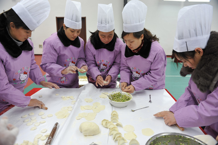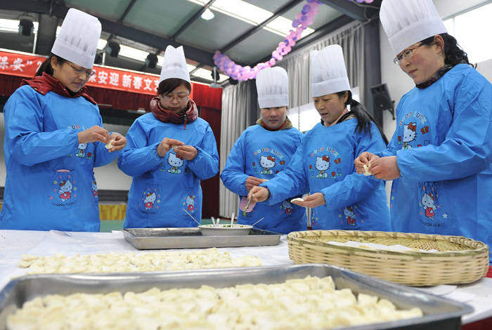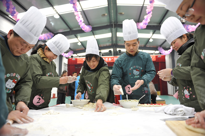 在煮餃子時候,每組又推選出一名女員工,參加“最佳能手”獎的比拼。只見在裁判規(guī)定的十分鐘內,四名女員工熟練的將刀工、手法、以及包餃子的技巧一一展現(xiàn),讓大家一飽眼福。