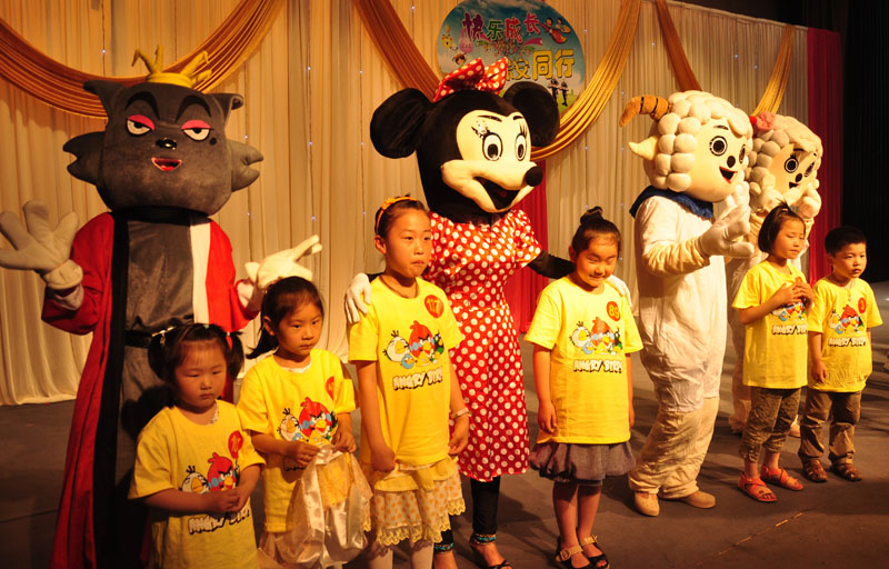 開場由一個喜羊羊的故事開始,大家靜靜的聽著,轉(zhuǎn)而變?yōu)橐粋€歡快的舞蹈《大家一起喜羊羊》。8個卡通人物在臺上跳著卡通舞,孩子們跟著音樂打起了節(jié)拍,整個舞蹈詮釋了一個喜羊羊和美洋洋勇敢戰(zhàn)勝灰太狼的快樂情景,讓孩子們寓教于樂。緊接著的是魔術表演,當魔術師輕輕的撥動手指,凌空出現(xiàn)一把傘,再一動,又是一把色彩斑斕的傘。每一次的變動,孩子們歡呼聲此起彼伏。當魔術師結束了他神奇無比的魔術表演,全場鴉雀無聲,隨即,爆發(fā)出一陣雷鳴般的掌聲。