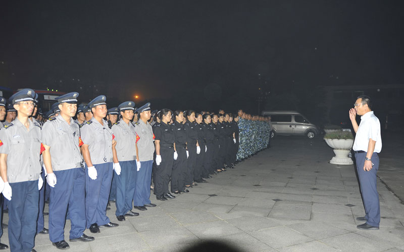 晚會期間,總公司人防中心和押運(yùn)中心等部門共投入700余名保安人員參加安全保衛(wèi)工作,公司總經(jīng)理婁伯翱、副總經(jīng)理王克、徐文剛等領(lǐng)導(dǎo)赴金湖現(xiàn)場組織指揮安保工作。全體執(zhí)勤隊(duì)員全力做好現(xiàn)場秩序維護(hù)和人員安檢以及各類突發(fā)事件應(yīng)急處置準(zhǔn)備等工作,圓滿完成了晚會安全保衛(wèi)工作任務(wù),樹立了淮安保安隊(duì)伍良好的形象。