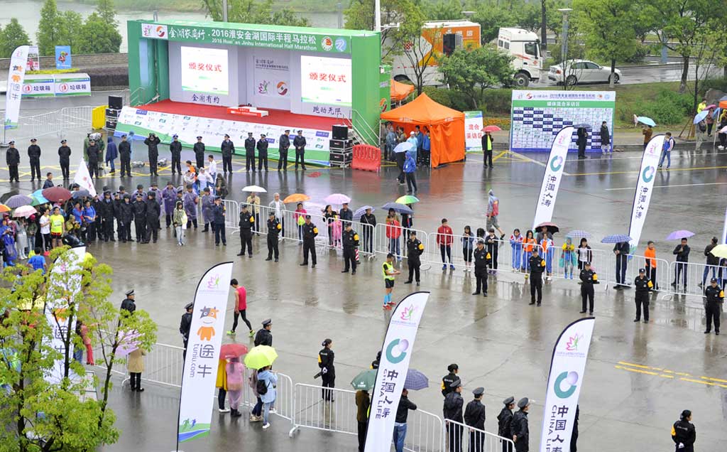 由中國田徑協(xié)會、江蘇省體育局、淮安市人民政府聯(lián)合主辦,金湖縣人民政府、淮安市體育局、江蘇省體育產(chǎn)業(yè)集團承辦的“2016淮安金湖國際半程馬拉松”比賽,于2016年5月15日上午8:30分在金湖縣荷花廣場鳴槍開賽,來自世界各地及我國長跑愛好者10000余名運動員參加了比賽?;窗彩斜0卜?wù)總公司派出700余名安保人員冒雨執(zhí)勤,提升了保安隊伍在復(fù)雜天氣條件下的快速反應(yīng)和安保執(zhí)勤的能力。
