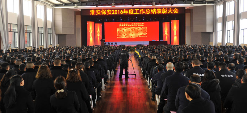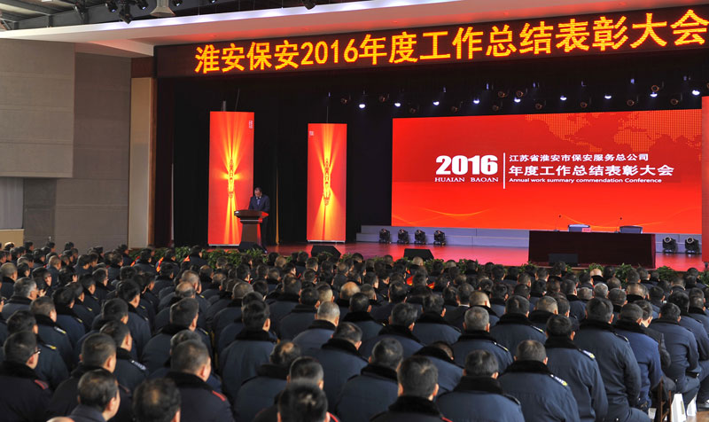 2017年2月26日上午,淮安保安服務(wù)總公司在活動(dòng)中心召開(kāi)了2016年度工作總結(jié)表彰大會(huì),總公司保安隊(duì)伍分隊(duì)長(zhǎng)以上骨干和保安員代表、押運(yùn)隊(duì)伍市區(qū)押運(yùn)員和駐各縣隊(duì)員代表、各分公司員工代表、行政中心各部門人員以及保安中專班學(xué)員共計(jì)近800人參加了會(huì)議。