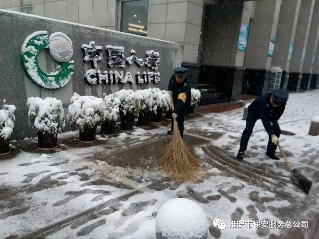 然而,雪景甚美,卻為出行的行人們帶來了嚴(yán)寒和積雪成冰的出行困難?;窗彩斜0卜?wù)總公司的保安們,考慮到種種問題,不畏嚴(yán)寒,在夜間按時出車執(zhí)勤,天不亮就拿起掃雪工具,積極主動清掃客戶單位門前、院內(nèi)積雪。積雪松的地方用推雪板推,積雪壓實的地方就用鐵鍬一點點的鏟除,執(zhí)勤崗點上的保安們呈現(xiàn)出一派火熱的鏟雪場景,讓城市煥發(fā)潔凈的光彩。