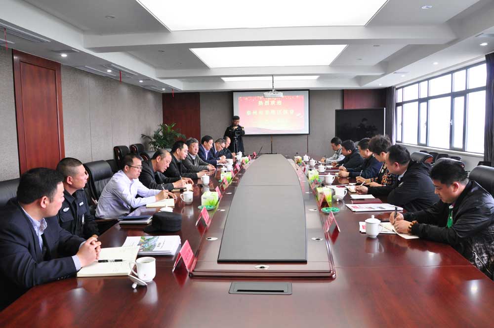 2018年4月26日上午,泰州市姜堰區(qū)公安局國(guó)資辦主任繆昌俊和泰州市姜堰保安公司總經(jīng)理邱小琳等一行6人蒞臨總公司考察交流,總公司總經(jīng)理婁伯翱、副總經(jīng)理王克、工會(huì)主席侯秀濱和人防中心、押運(yùn)中心、技防公司、科技公司等部門(mén)負(fù)責(zé)人參與座談交流。座談交流中,雙方重點(diǎn)針對(duì)大型活動(dòng)安保的運(yùn)作模式、科技信息化應(yīng)用、安全風(fēng)險(xiǎn)評(píng)估等方面進(jìn)行了深入交流。
