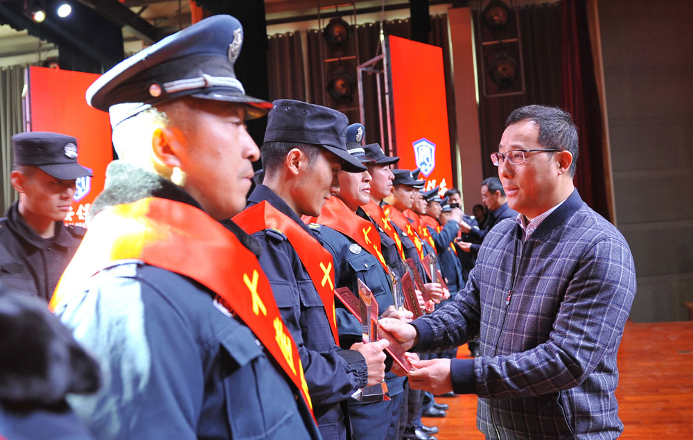 2019年3月3日上午,總公司在二樓報告廳隆重召開2018年度工作總結(jié)表彰大會。國聯(lián)集團湯正明董事長、辦公室孫國庭主任出席會議;總公司黨總支成員和各部門負責人;市區(qū)押運員和駐縣押運員代表;保安分隊長以上骨干和保安員代表;駐外分公司駐外執(zhí)勤項目部負責人和高級安保專業(yè)班學員等共900余名員工參加了會議。