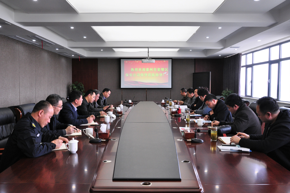 2019年3月29日,泰州市姜堰保安服務(wù)公司總經(jīng)理邱小琳一行7人蒞臨總公司交流,總公司總經(jīng)理婁伯翱、副總經(jīng)理王克與行政中心、人防中心、科技公司、無(wú)人機(jī)飛控隊(duì)等部門(mén)負(fù)責(zé)人參與座談交流。