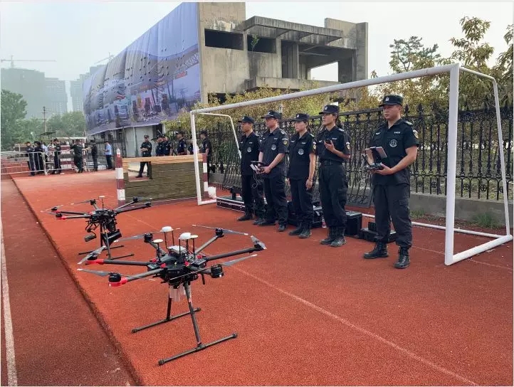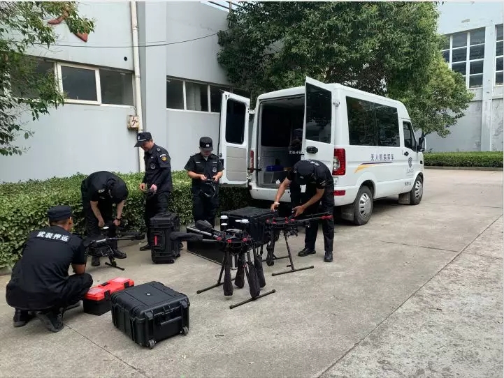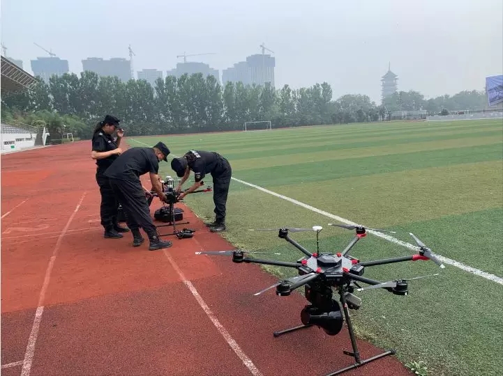 到達指定區(qū)域后,無人機操控員立即進行了分工,并對設(shè)備進行連接調(diào)試。早上5時,所有參演人員按照指揮部指令到達指定位置。7點20分,蘇北跨區(qū)域拉練正式開始。負責空中航拍的無人機操控員迅速將演練現(xiàn)場的實時畫面?zhèn)鬏斨连F(xiàn)場指揮部及省公安廳;演練過程中,發(fā)現(xiàn)“上訪人員”用民用無人機對現(xiàn)場進行拍攝和干擾,無人機反制小組迅速做出反應(yīng),操控無人機反制設(shè)備對民用無人機進行管制和驅(qū)離;隨著“上訪人員”人數(shù)的逐漸增多,現(xiàn)場指揮員要求飛控隊操控無人機載喇叭進行高空喊話和宣傳相關(guān)的法律法規(guī),同時對“上訪群眾”進行疏導(dǎo);由于現(xiàn)場部分“上訪人員”情緒過激,出現(xiàn)燒、搶、打、砸等惡劣狀況發(fā)生,態(tài)勢愈發(fā)嚴重,指揮部立即下達指令,無人機載著煙霧彈、催淚彈等升空,對人員密集的區(qū)域進行投彈,成功驅(qū)散了現(xiàn)場的打砸人員。