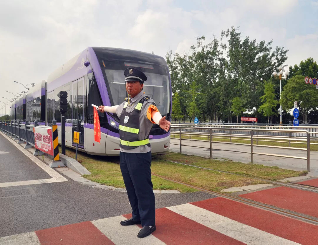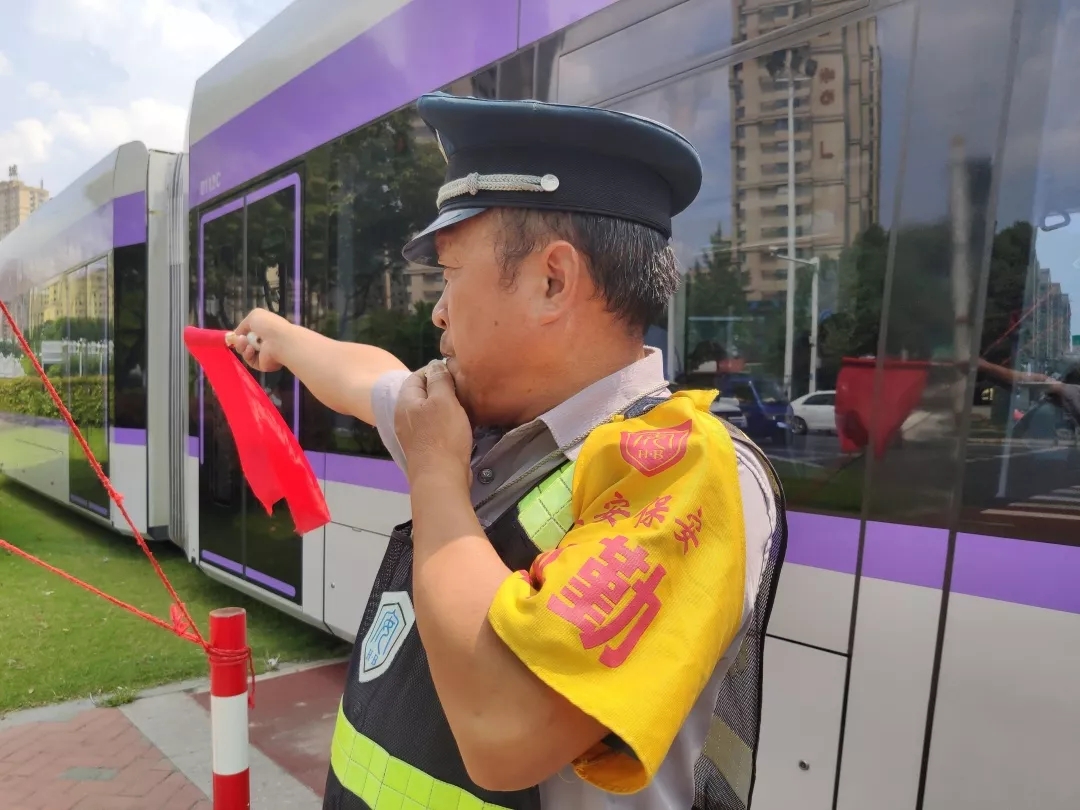 入伏以來(lái),烈日當(dāng)頭,街頭車輛卷起的滾滾熱浪撲面而來(lái),讓人喘不過氣。在淮安現(xiàn)代有軌電車的戰(zhàn)線上有這么一群人,頂著烈日、迎戰(zhàn)高溫、揮舞旗幟、吹響口哨、引導(dǎo)行人。這就是淮安保安派駐在有軌電車各主要道口的引導(dǎo)員們。
