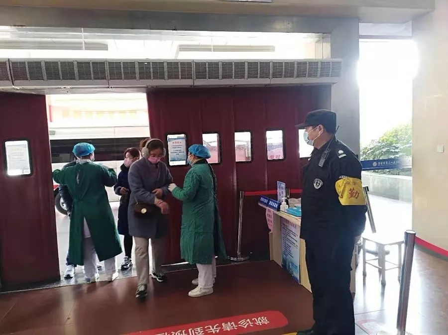 保安隊伍嚴(yán)把客戶單位人員和車輛出入關(guān),對進(jìn)入執(zhí)勤區(qū)域的人員進(jìn)行測溫登記和車輛消毒,配合客戶單位對辦公場所等公共區(qū)域進(jìn)行消毒防控;駐醫(yī)院保安員在執(zhí)勤中認(rèn)真做好就診人員體溫測量,疏散、引導(dǎo)就醫(yī);駐銀行保安員在執(zhí)勤中督促辦理業(yè)務(wù)的客戶做好自我防護(hù),并提醒佩戴防護(hù)口罩,協(xié)助銀行對客戶進(jìn)行體溫測量,做好安全防護(hù)措施。