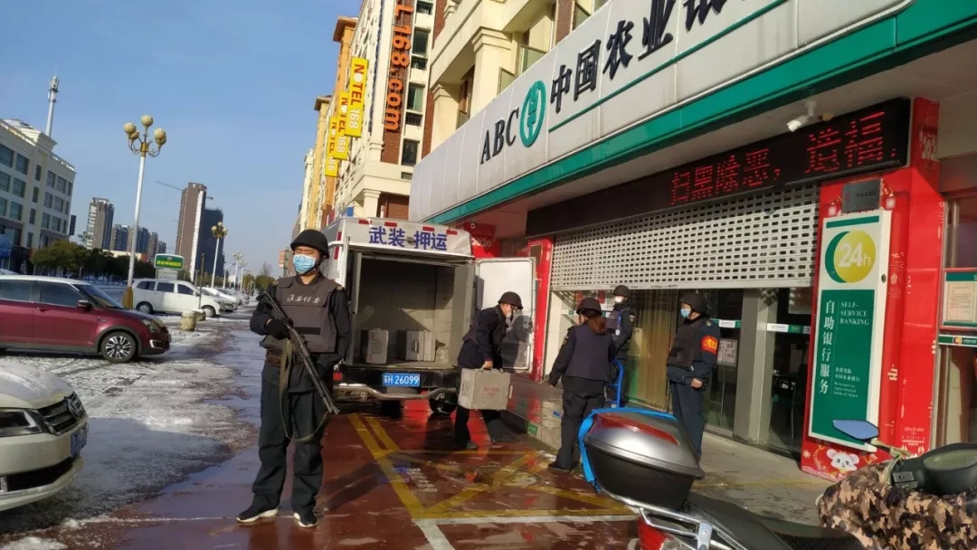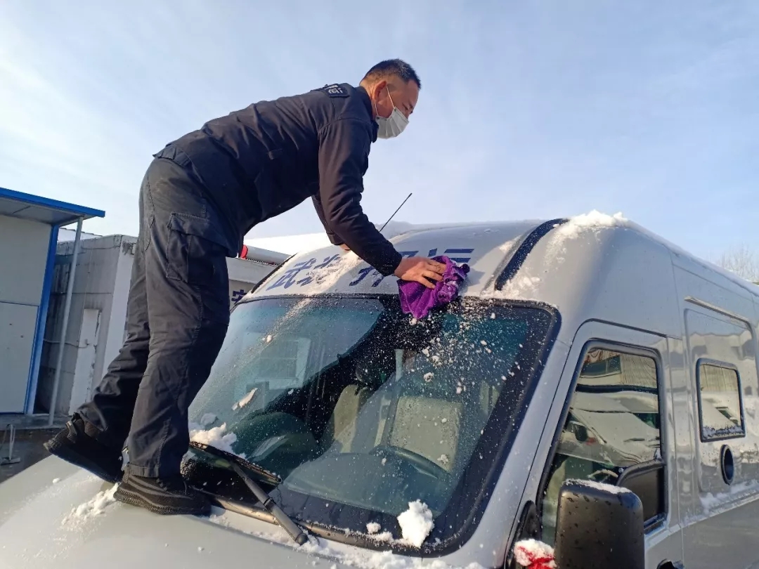 2月16日早晨5點30分,路面結(jié)冰光滑無比,出勤的押運人員都按照押運中心的要求提前趕到公司,清掃公司院內(nèi)的積雪和協(xié)助駕駛員安裝車轱轆防滑鏈。寒風呼嘯,氣溫零下4度,只見隊員的手都凍得通紅,但是仍在快速有序地進行安裝防滑鏈、測量體溫、領(lǐng)取裝備和做好一切防滑、防控疫情措施,押運管理中心主任陳正國、教導員馬如松也戴著口罩加入到抗擊疫情、冰雪的工作中。每輛運鈔車在登車出發(fā)前,中心領(lǐng)導都一再叮囑途經(jīng)橋坡和道路轉(zhuǎn)彎處的操作要領(lǐng)和注意事項,強調(diào)要小心駕駛,確保安全……