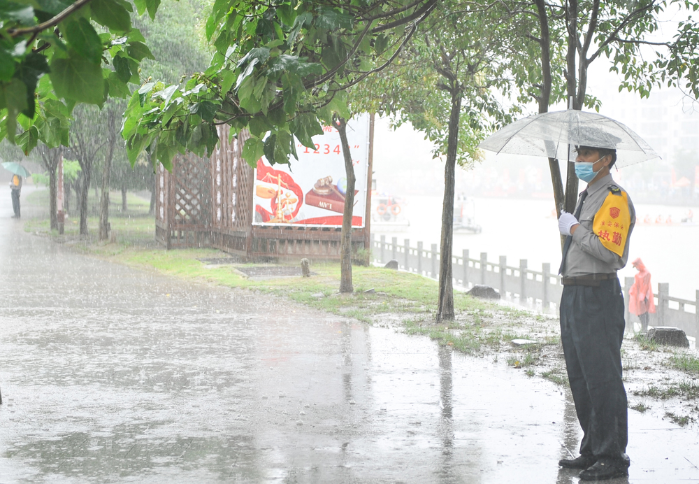 23日清晨6時,總公司抽調(diào)600余名保安人員按照方案提前布崗到位,在風雨中形成一道堅實的人形屏障風景線。面對肆虐的風雨,執(zhí)行現(xiàn)場安保任務的隊員們始終堅守在崗位上,有序開展安全檢查、體溫檢測、沿途守護、維持賽場秩序,一方面繼續(xù)抓牢抓實疫情防控,一方面認真做好各項安保工作,精心保障賽事活動安全、有序開展。