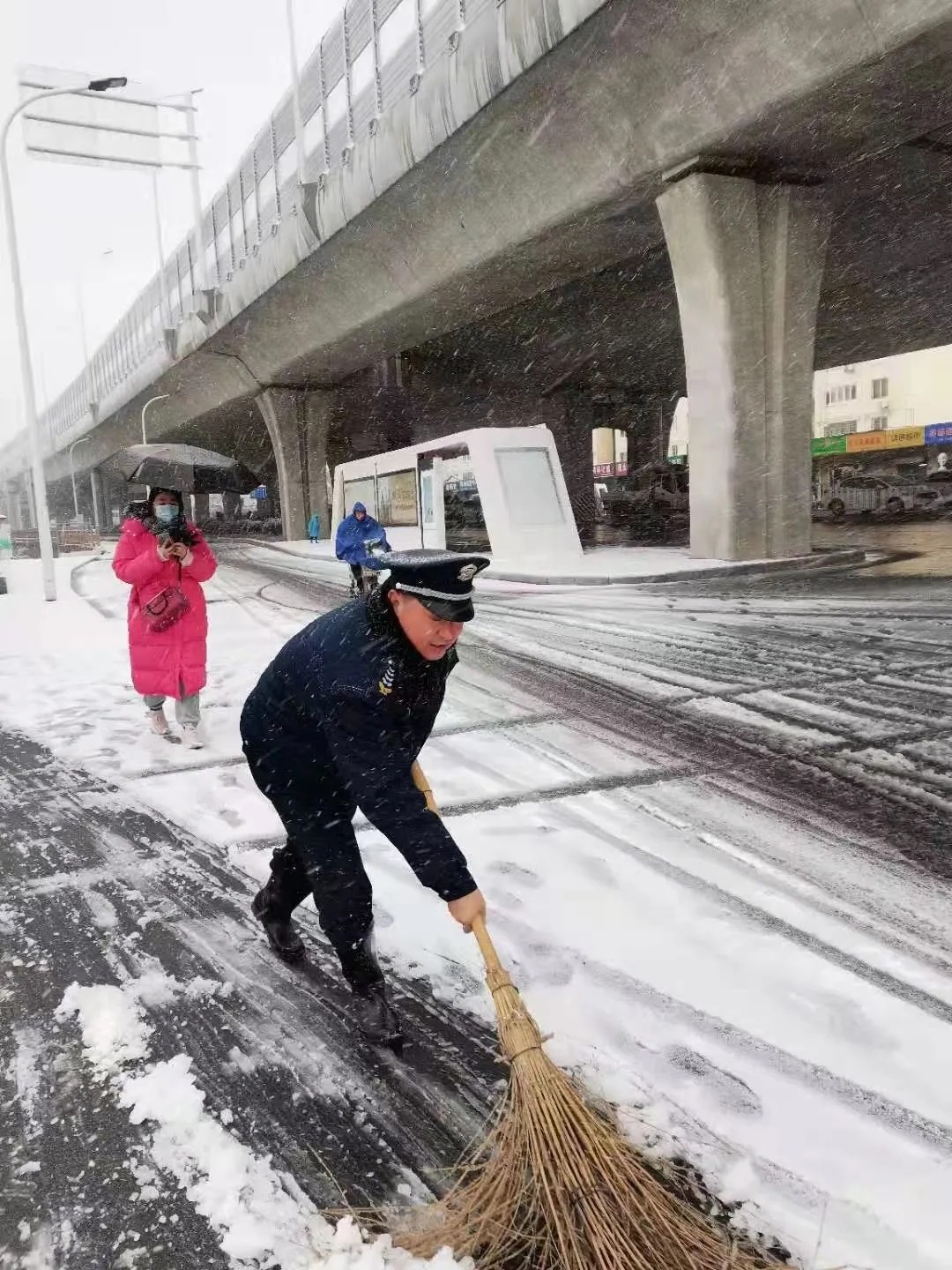 面對惡劣天氣,全體人員不畏嚴寒,在雨雪里,寒風中,恪盡職守,用實際行動踐行忠誠和擔當,盡最大努力把暴雪和低溫天氣的影響降到最低,切實保障人民群眾生命財產(chǎn)安全和社會和諧穩(wěn)定。